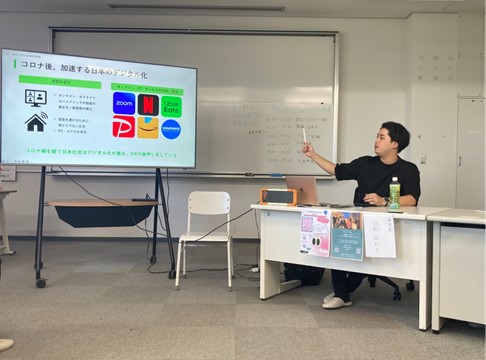 We had a lecture and discussion titled “Personality Required in the DX Era” by Mr. Hiroki Kitano, an alumnus of KIP. Mr. Kitano discussed the skills required in the DX era and the progress of DX on a global scale. After that, there was a discussion on the importance of science subjects. The discussion included both pros and cons of the theme, with some emphasizing the importance of liberal arts subjects for character development and understanding of society, while others argued that science subjects were essential to address the shortage of science talent. Notably, high school students showed a broad insight and strong engagement in the discussion.