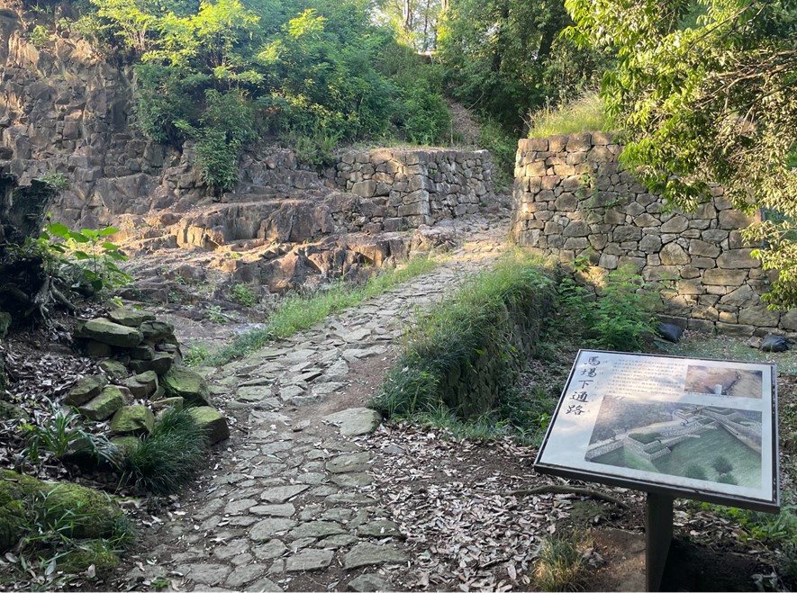 After leaving Gunma Kokusai Academy, we visited the ruins of Kanayama Castle, one of the Seven Famous Castles of Kanto region. Kanayama Castle is a mountain castle built in the 15th century by the Nitta family. The whole mountain itself is the castle, and it has intricated stone walls and man-made valleys, which make it difficult for enemies to climb up to the top. Thanks to these characteristics, the castle has survived the attacks by several commanders such as Shingen Takeda and Kenshin Uesugi. We were able to learn the way the castle has become “unbreakable” as well as the history and the geography of Gunma prefecture.