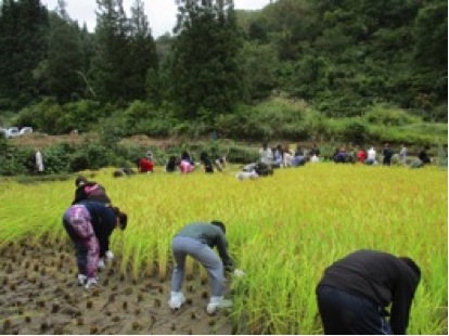 From October 3rd to 4th, 11 KIP members and 2 KIP alumni visited Minamiuonuma City in Niigata Prefecture. We had a discussion with local people and students from International University of Japan. We harvested rice and learned how to make “Hazakake” (the place to put rice in the sun) from local farmers.
