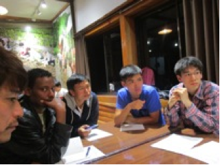 We had a discussion with local farmers, workers from various industries, city employees, and students from International University of Japan. They were total of 50 people and were divided into five discussion groups.