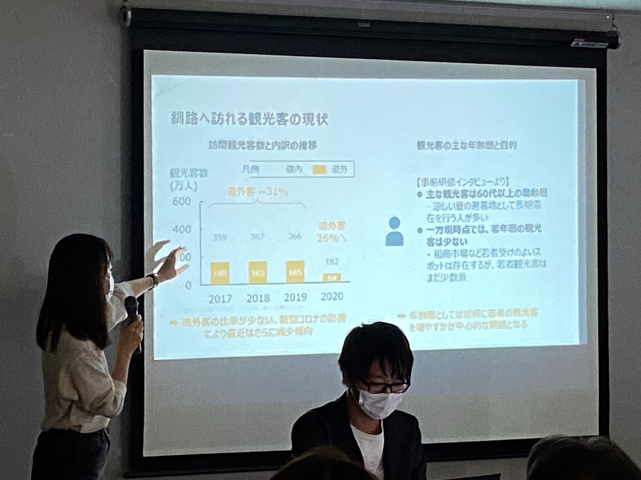 The Kushiro training began with an idea competition. The participants were divided into three teams and kept preparing ideas for two months before the regional study. Aiming to revitalize the Kushiro economy, we created ideas to attract people to come to Kushiro while being involved with the industries selected by each team. The mayor of Kushiro and city officials commented on the ideas and taught us the importance of considering sustainability in business planning. We hope that Kushiro City will adopt new policies based on these three ideas. In addition, we held a student discussion with universities and high school students in Kushiro and were able to hear their passion for their hometown, Kushiro. We were impressed by the strong will of high school students to stay in the local area and support the evolution of Kushiro.